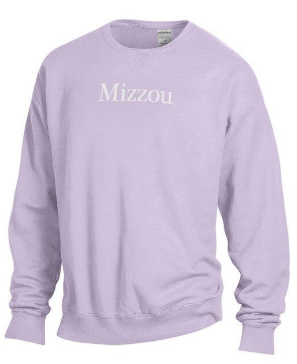Mizzou Tigers Comfort Wash Mizzou Suede Puff Ink Lavender Crew Sweatshirt