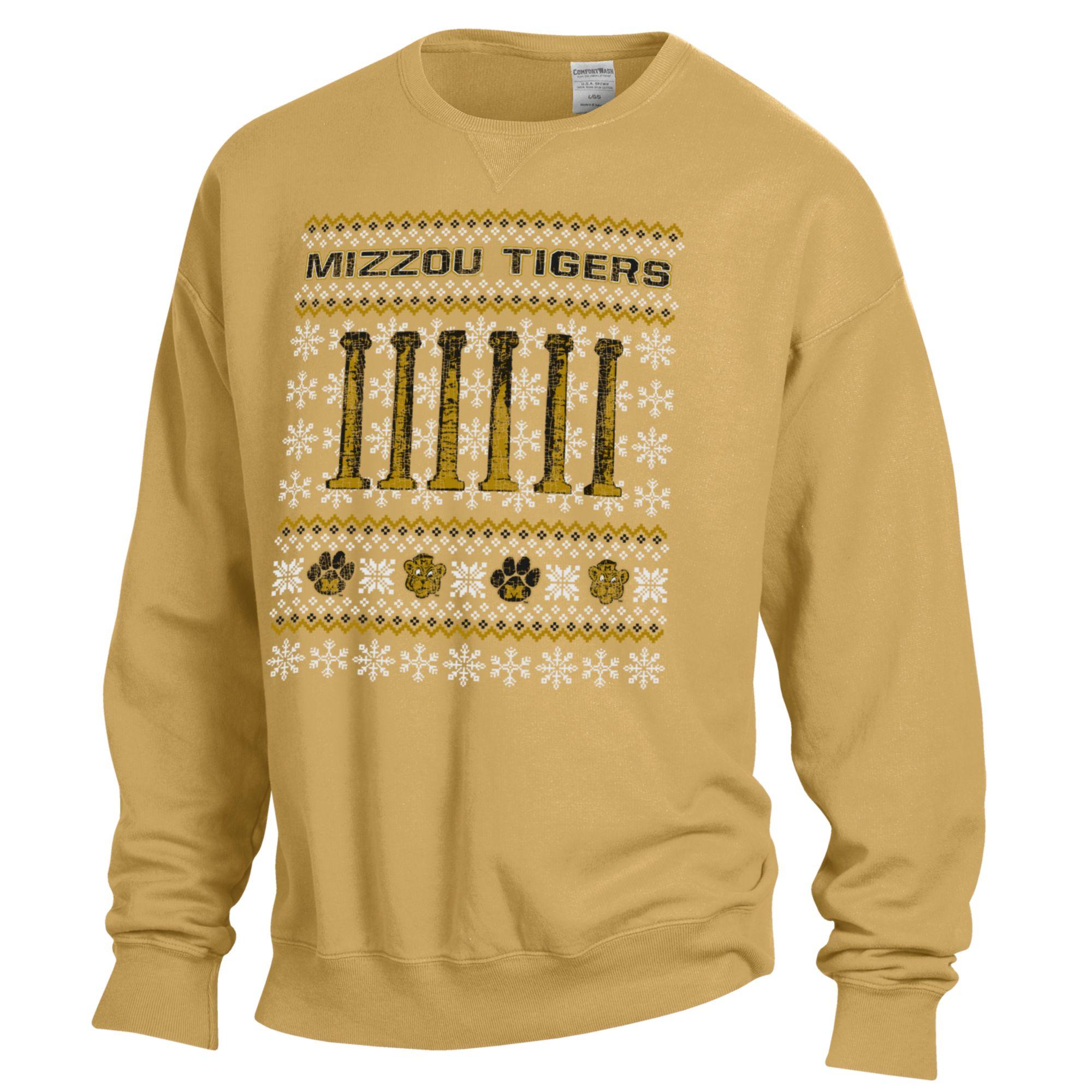 Mizzou Tigers GEAR for Sports Snowflakes, Columns, Tiger Paw Holiday Gold Sweatshirt