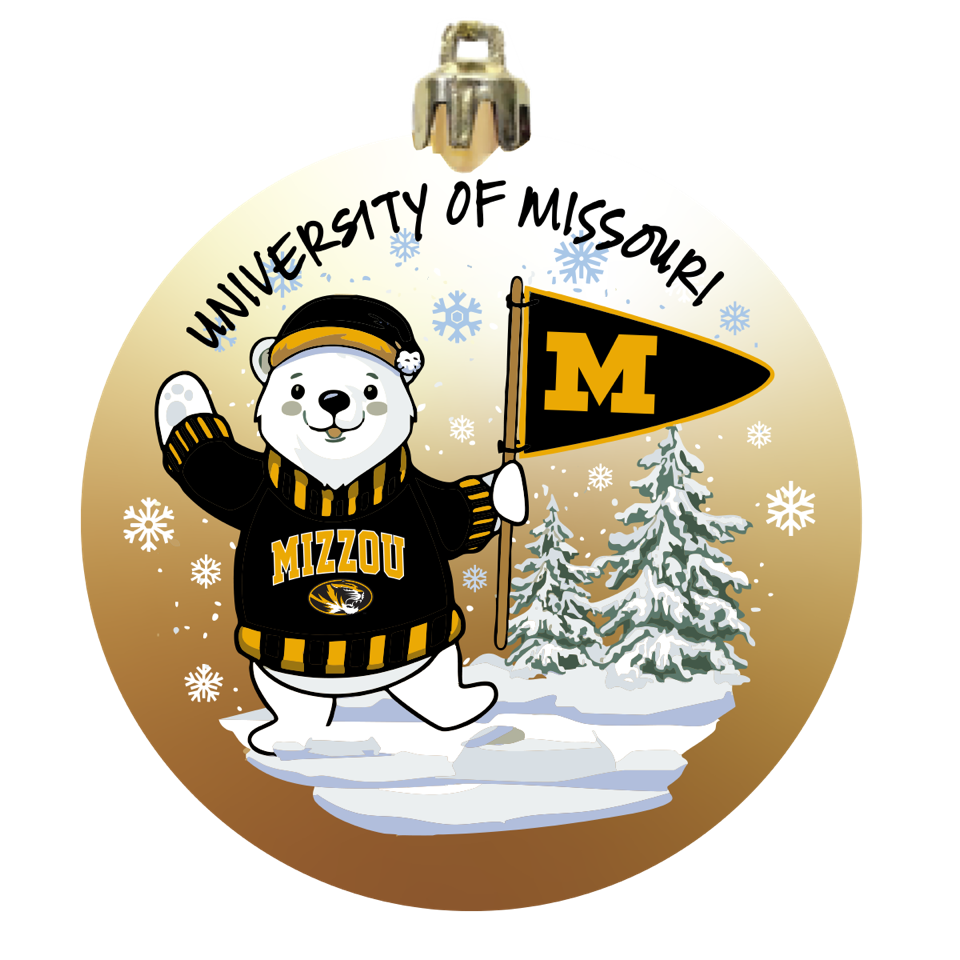 Mizzou Tigers University of Missouri Shatter Proof Polar Bear with Flags and Snowflakes Ornament