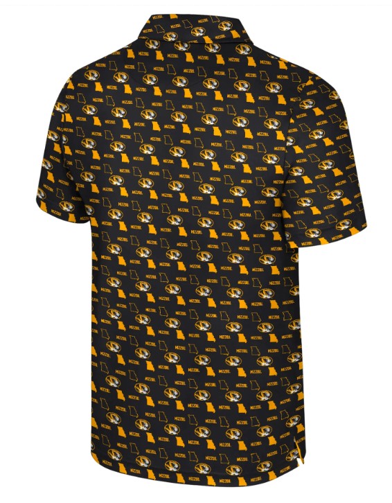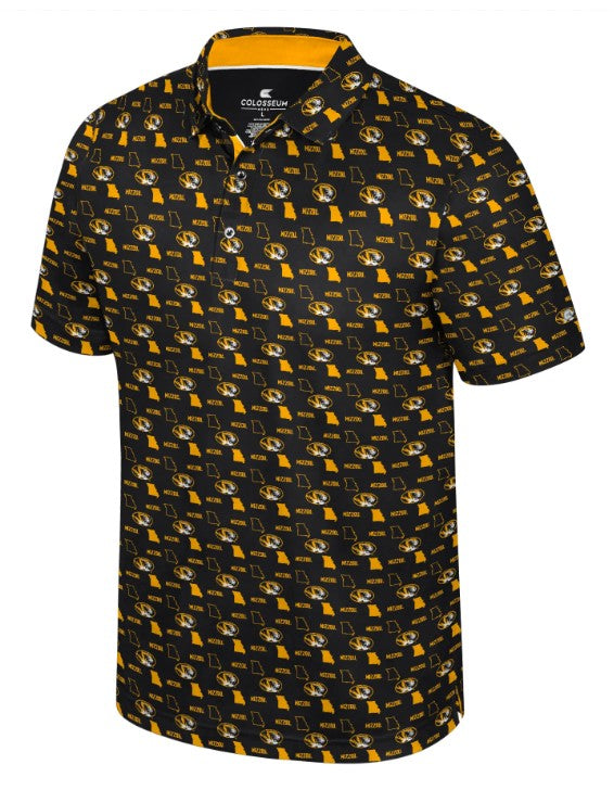 Mizzou Tigers Colosseum Truthsayer State Oval Tiger Head Allover Print Black Polo
