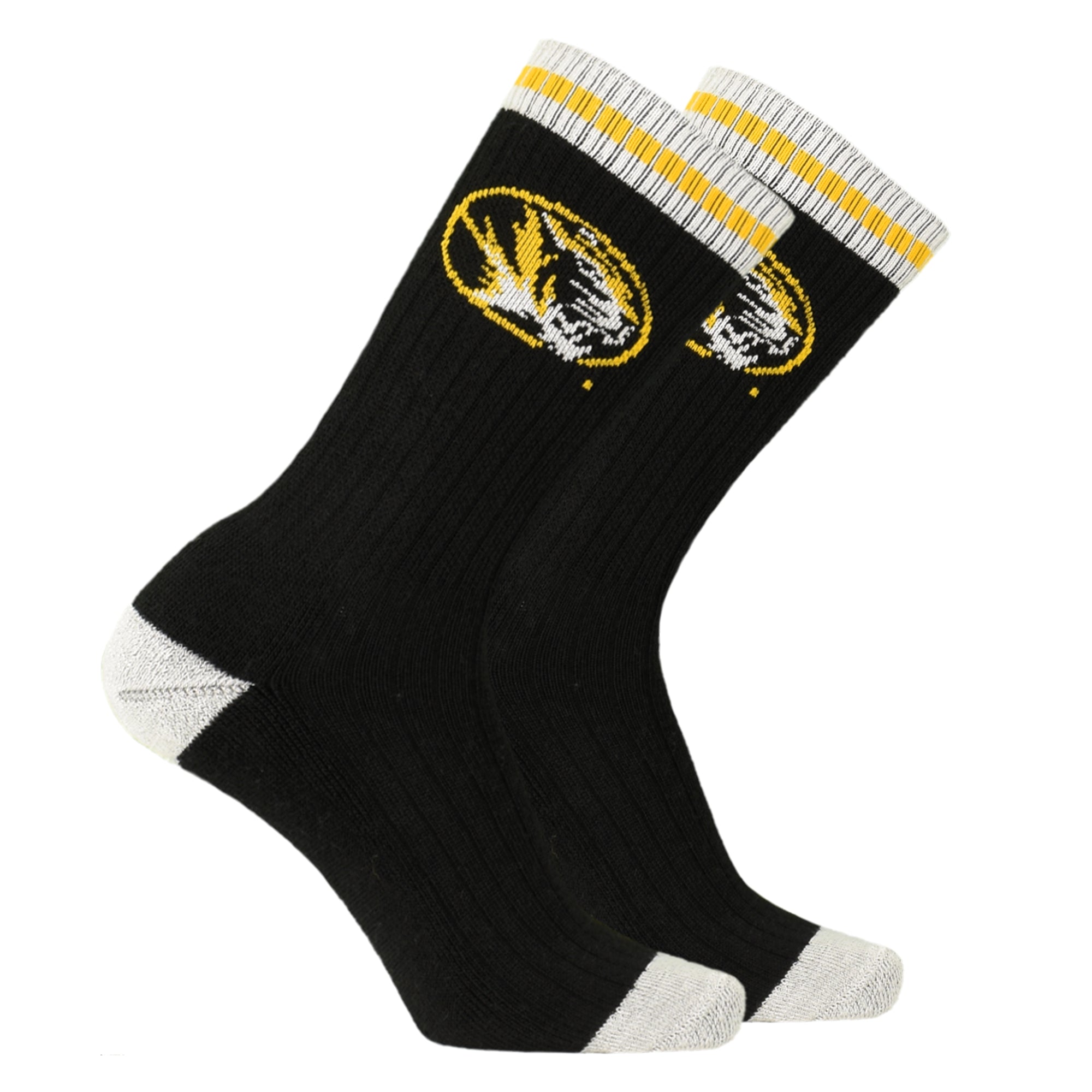 Mizzou Tigers Cozy Stripe Tiger Head Black Grey and White Socks