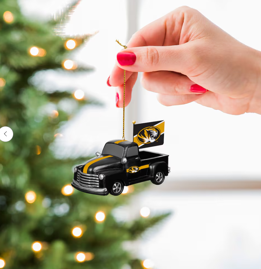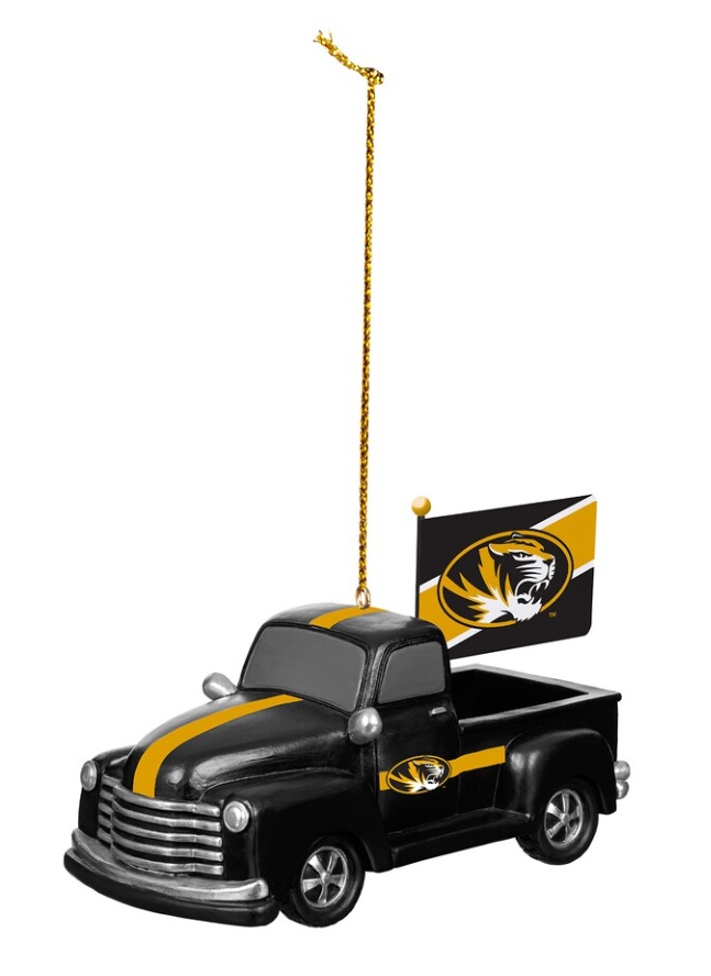 Show your Mizzou pride this holiday season with the Missouri Tigers 2-Inch Rally Truck Ornament. Crafted from durable polyresin, this black and gold truck features the fierce Tigers logo and team flag, making it the perfect addition to any fan’s décor. Whether you hang it on your Christmas tree, display it in your office, or gift it to a fellow fan, this collectible ornament captures the bold spirit of Missouri athletics. A must-have for every loyal Tiger supporter