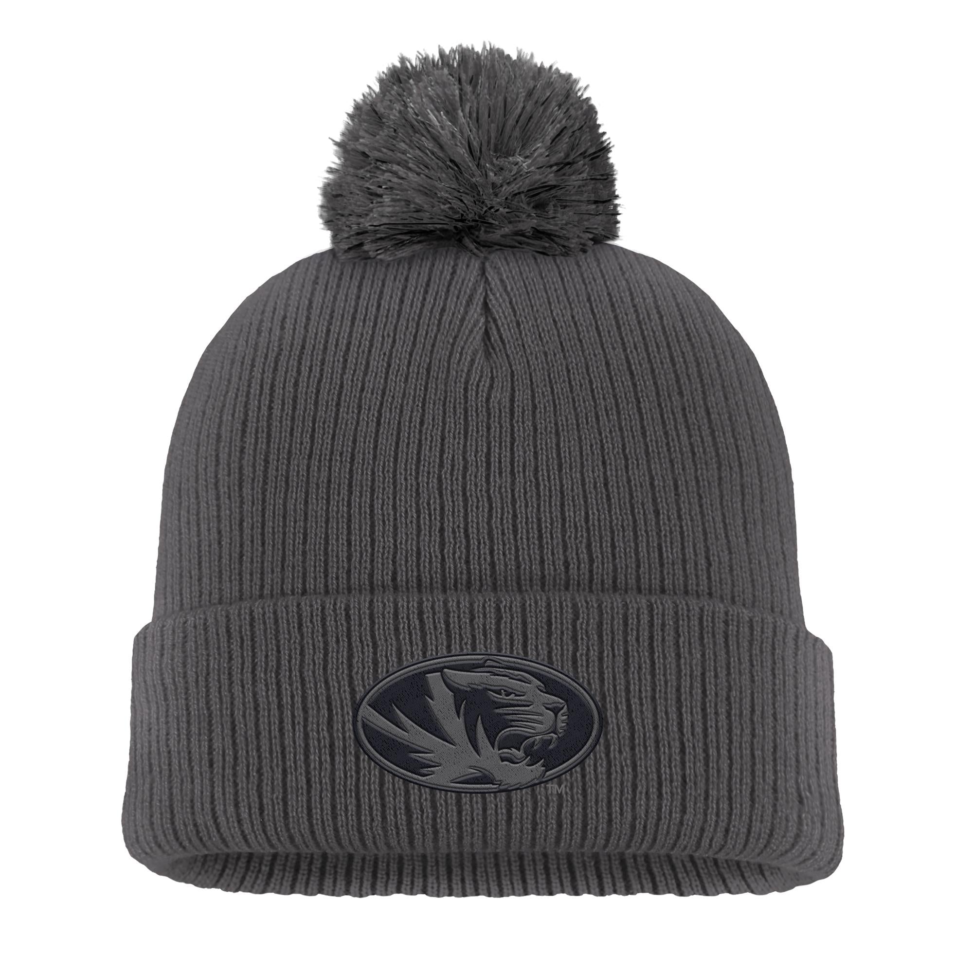 Mizzou Tigers Nike® 2025 Fan Peak Cuff Pom Oval Tigers Head Tigers Dark Heather Grey Beanie