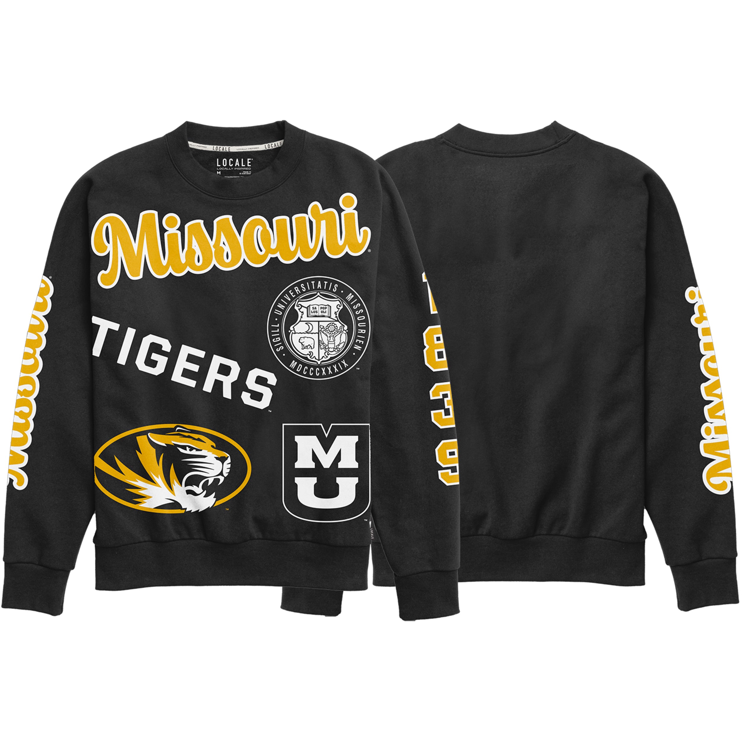 Mizzou Tigers Women's Locale Kelsey Mizzou Logo's All Over Black Crew Sweatshirt