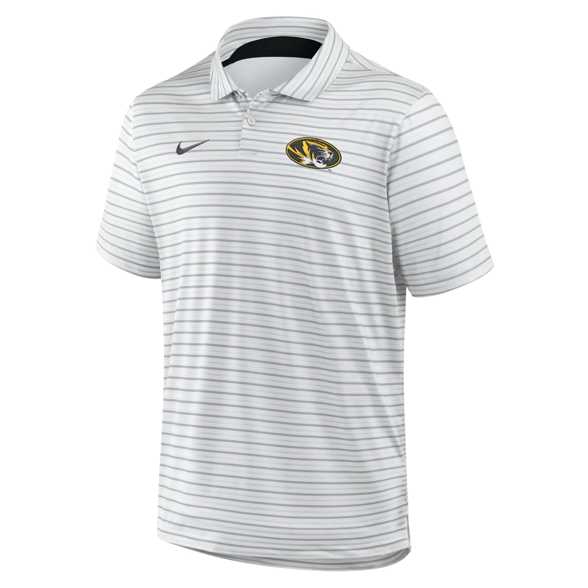 Mizzou Tigers Nike® 2025 Basketball Authentics Oval Tiger Head White and Grey Striped Polo