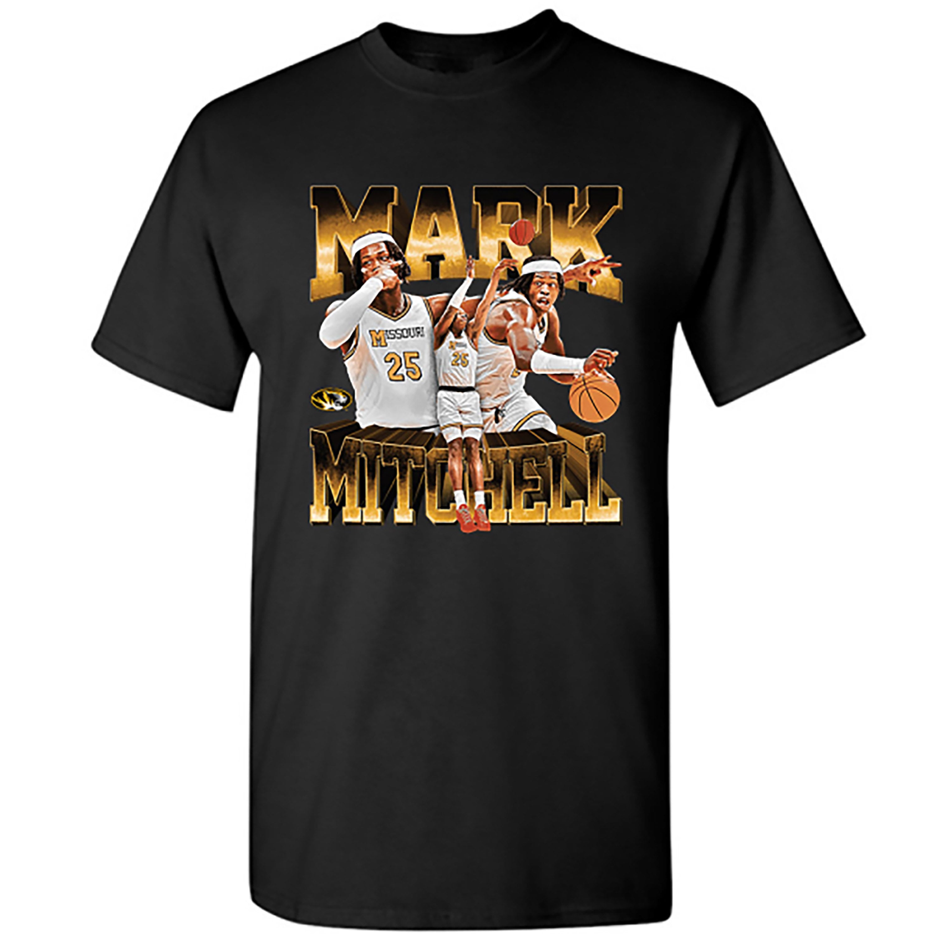 Mizzou Tigers NIL Mark Mitchell Basketball Player Design Black T-Shirt